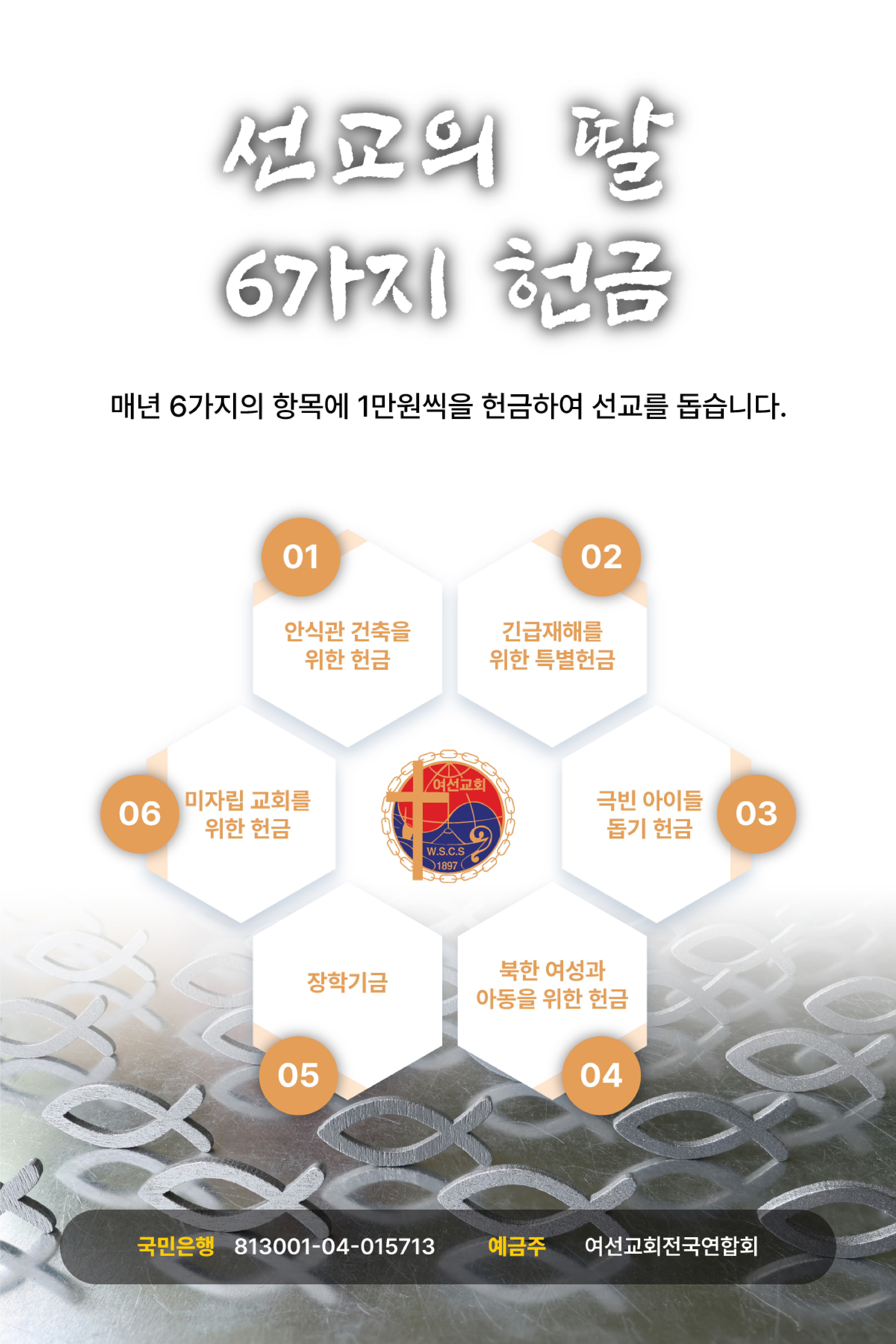 HOME > 후원하기 > 선교의 딸 6가지 헌금