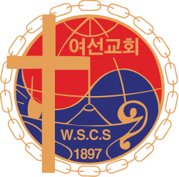 지구와 태극 씨줄과 날줄은 세계를 상징하며 태극은 세계 속의 한국을 뜻하는 것으로 기독교대한감리회 여선교회가 세계로 뻗어가기를 소망하는 것이다.